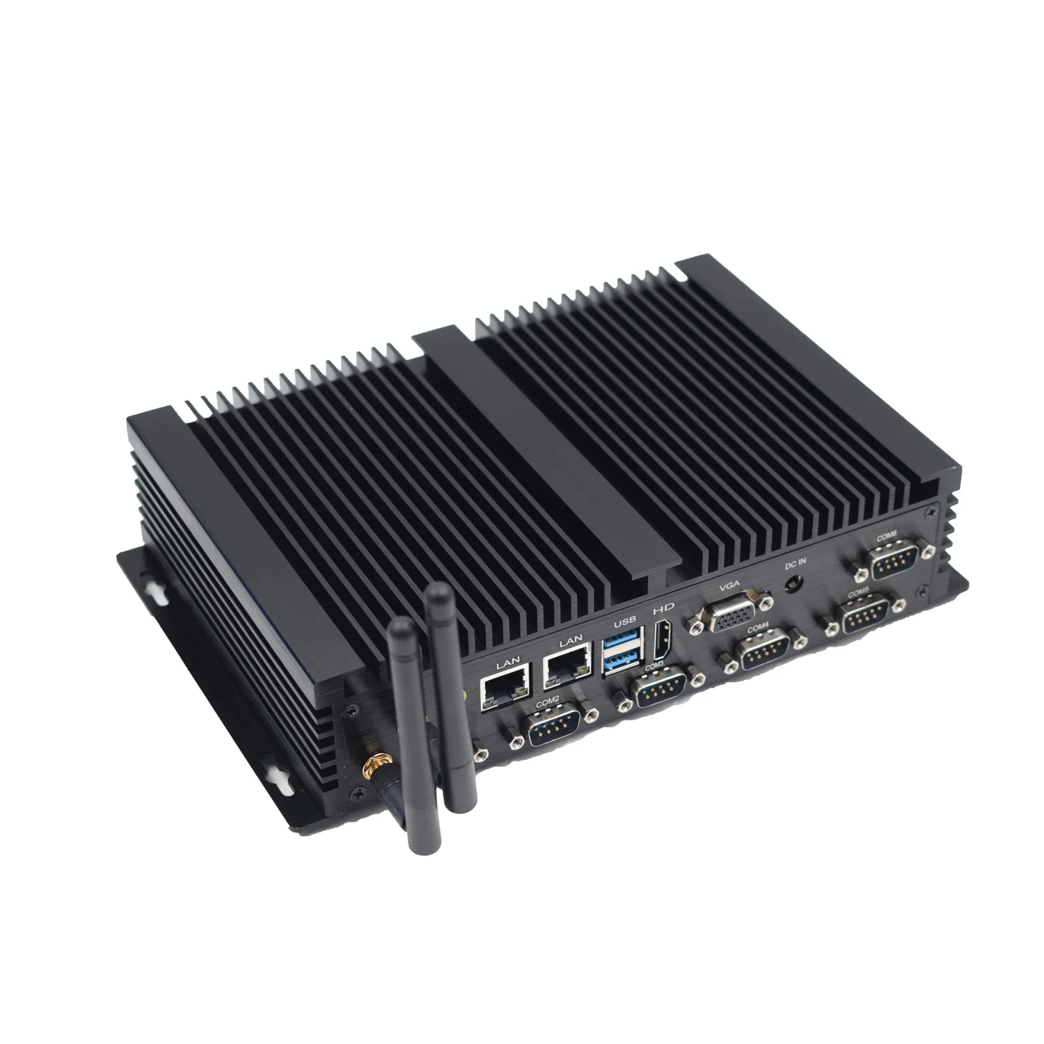Buy Now On AliexpressPartaker I4 Industrial Mini PC with 6 COM 2 HDMI 2 Lan Black Color Intel i3 4005u 4010u i5 4200u i7 4500u Processor