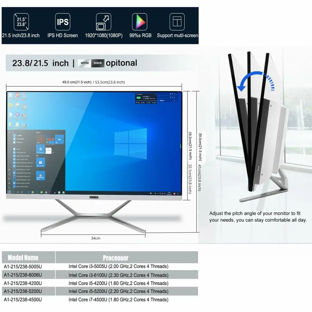 | HYSTOU Intel Core i5 10210U i7 8565U All in One PC Computer 23.8 Inch Monitor 3M Web Cam for Gaming Office Using |