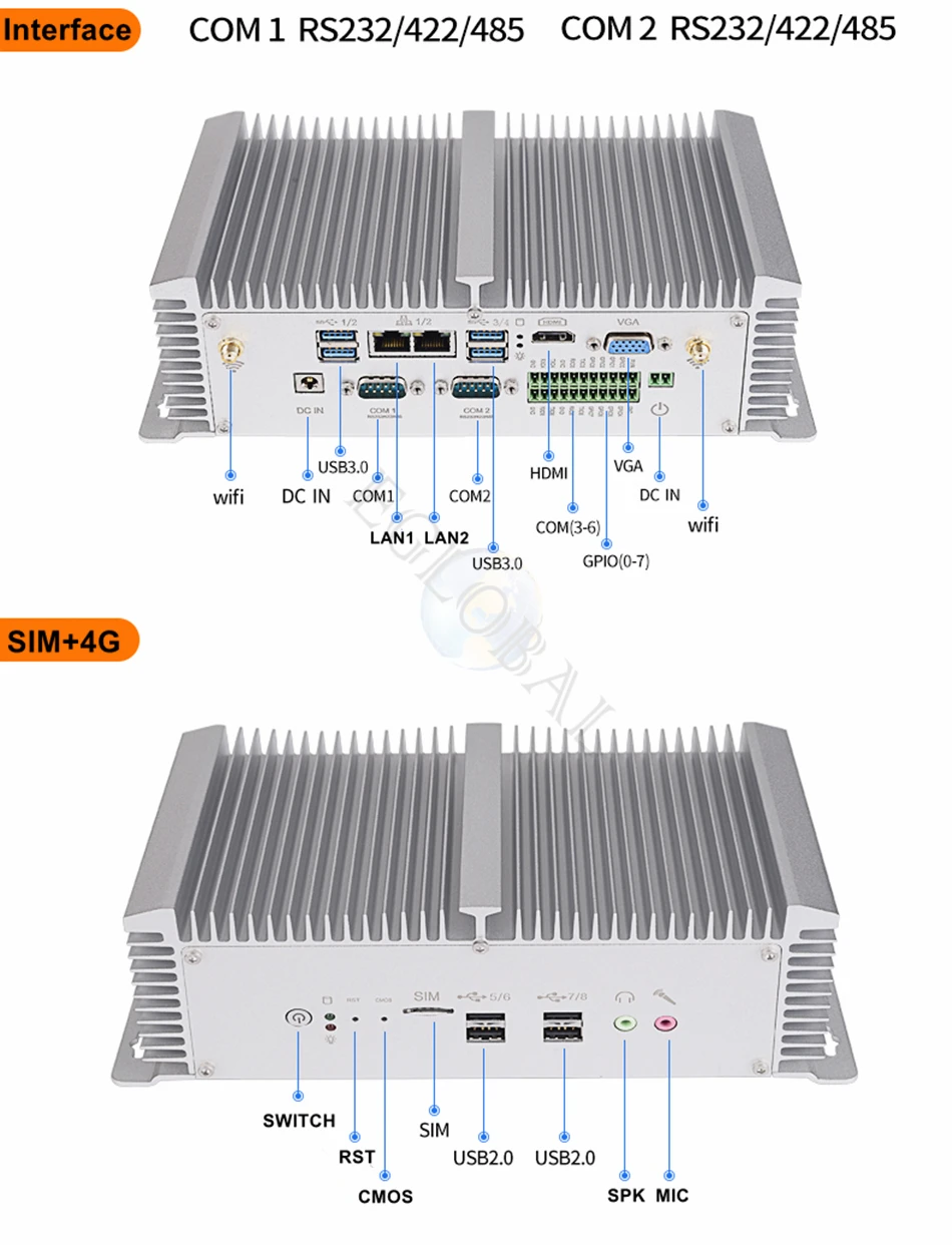 Industrial Mini Computer Core i7-8550U i5-8250U i3 DDR4 Rugged Fanless PC 6*COM 2*Intel Lans 8*USB GPIO LPT VGA HDMI 3G/4G WiFiBuy Now On Aliexpress