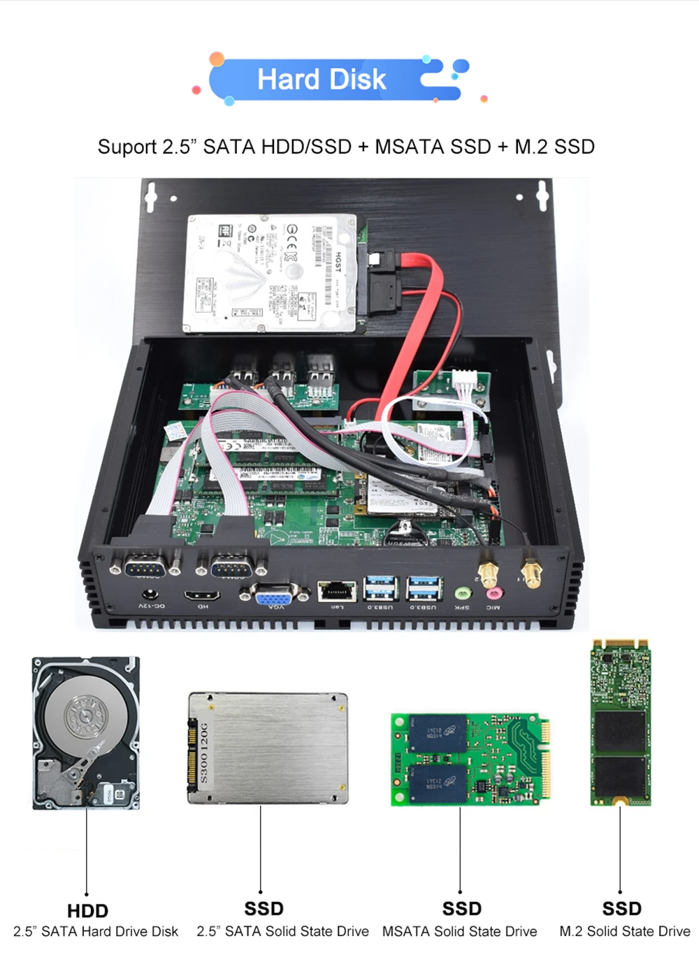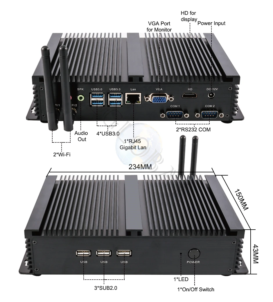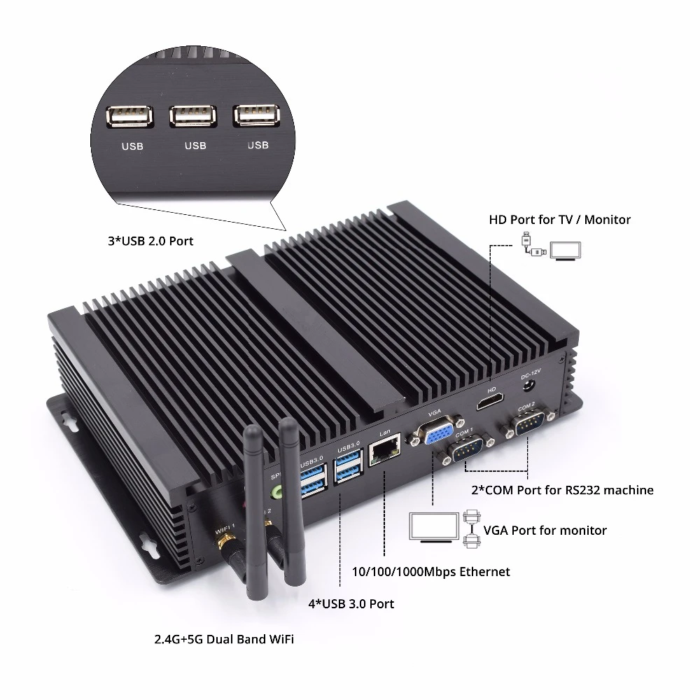 HLY Fanless Industrial Mini PC Core i5 8350U 7200U i7 7500U 2*LAN 2*RS232 8*USB Micro Computer Linux Windows 10 7 Wifi HDMI VGABuy Now On Aliexpress
