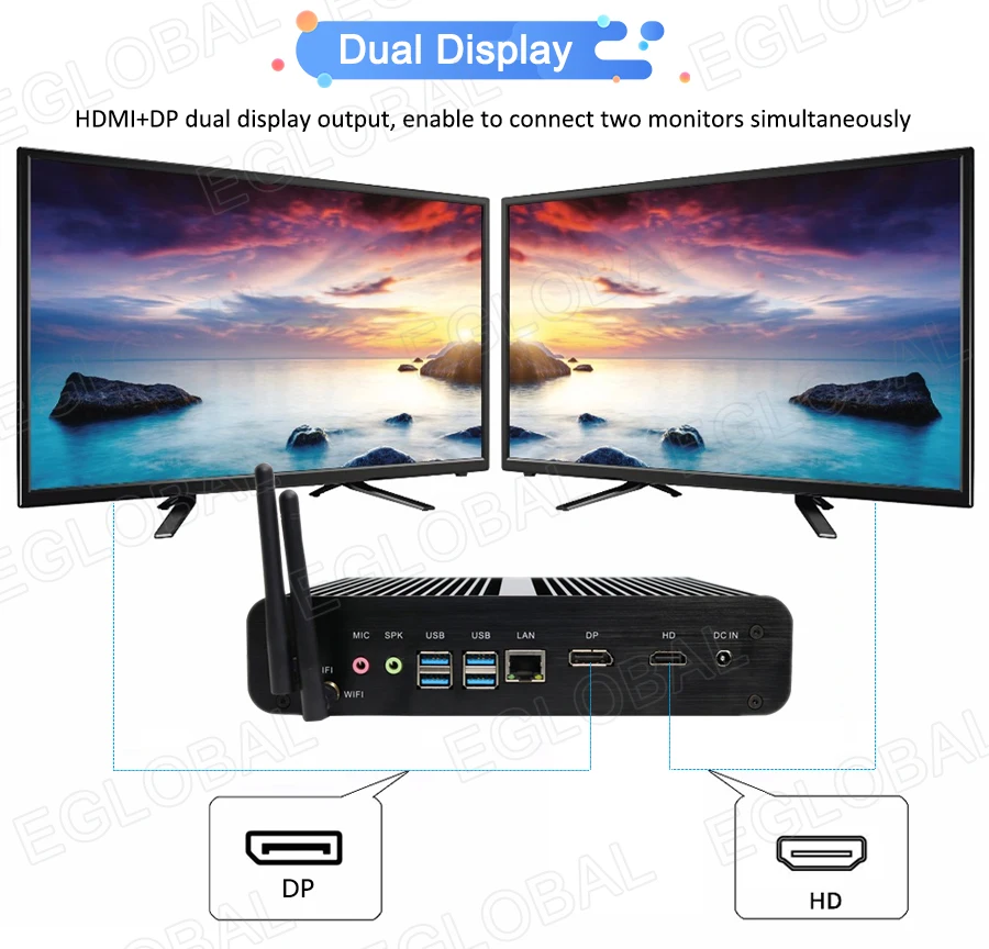 | EGLOBAL Fanless Mini Computer Intel Core i7 8550U Quad Core Genuine Windows10 pro Linux Ubuntu minipc no Fan WIFI HDMI Nettop |