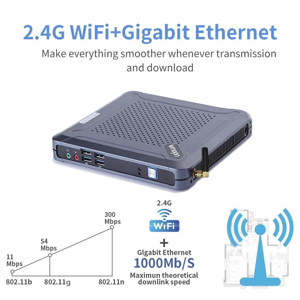 Fan Mini PC i5 Kaby Lake CPU Intel Core i5 7200U 2 cores 4 threads 2.5GHZ Dual Brand WIFI Windows Mini Computer Desktop PC Game