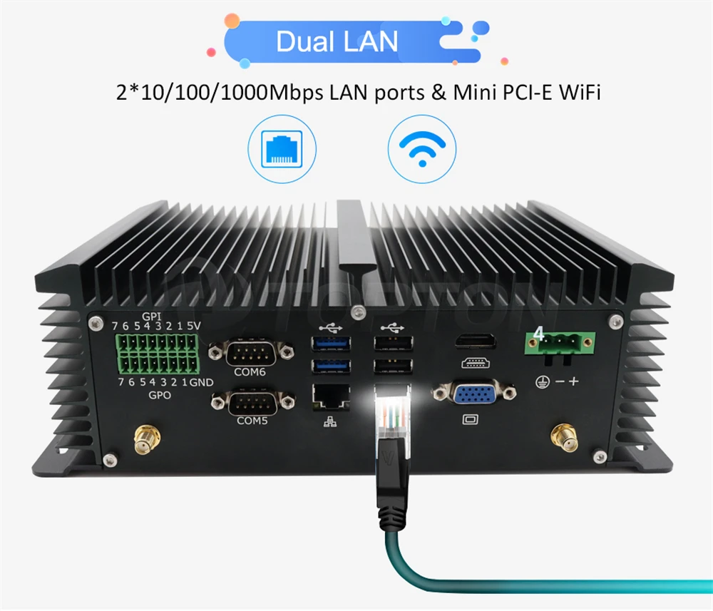 - Fanless system without cooling fan, no any noise, thicker and longer heat-sink fins for working as long as 7x24 hours durably.