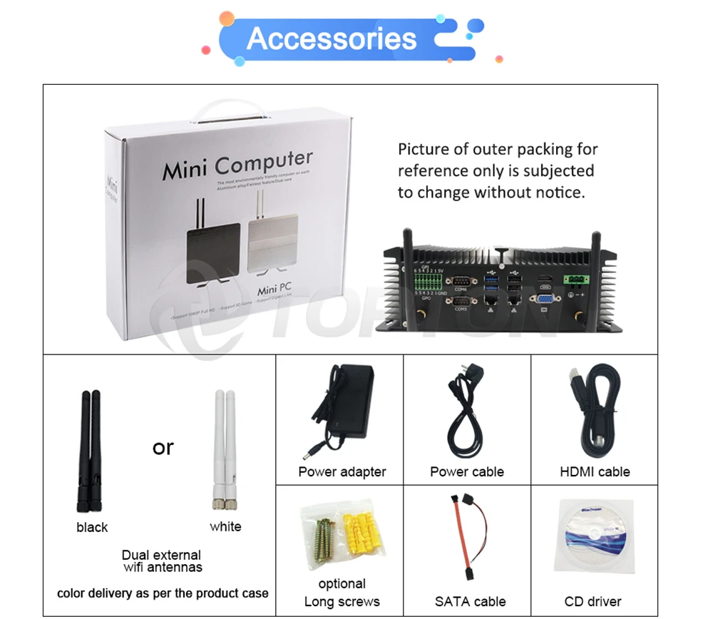 DO NOT buy "no ram no storage" bundle if you are not Computer Expert, PC had best to use Samsung, SKhynix, Micron etc original brand accessories, We DO NOT compensate for buyer's own ram and hard drive. - Brushed Full Aluminum Alloy Silver/Black color shell for heat dissipation, Exquisite production craft on outside design. - 2xIntel i201/i211 Gigabit RJ45 LANs, 6xDB9 COM(4xRS232/422/485), 8xUSB(2xUSB inside), PS/2, GPIO and LPT rich ports for different equipments. - Fit for 9-36V 3pin phoenix terminal power input, ATX/AT quick switch. - Support VGA + HDMI dual display output synchronously. - One embedded SIM card slot onboard for 3G/4G Wi-Fi. - Support Watchdog, AWAL, RTC, WOL(ATX mode), PXE, Reset functions. - Low consumption TDP only 10W and can be mounted on the wall. Buy with confidence! 3 Years long warranty for fanless system! 1. 3G module add extra 50$, 4G module add extra extra 70$. Upgrading link: https://www.aliexpress.com/item/4000259902487.html (how many dollars to upgrade, pay how many pieces, US$1=1pcs, For example upgrade USB IR remote, pay 14pcs for US$14, remember to leave message noting which one you upgrade for...)