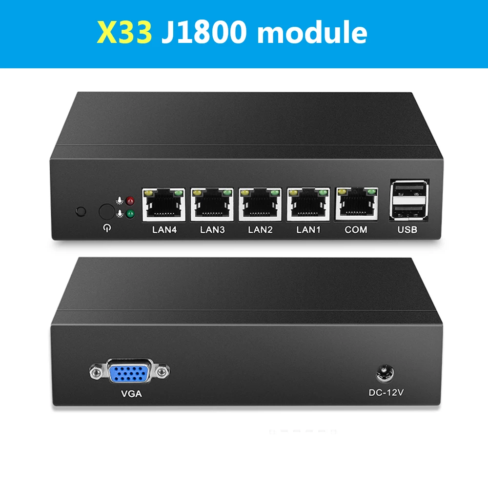 1x Mini PC1 x Power Adapter, 1 x Power Cord ( Adapter plug according with your shipping address )1 x VESA1x User ManualX33 Module 4-LAN Mini PC