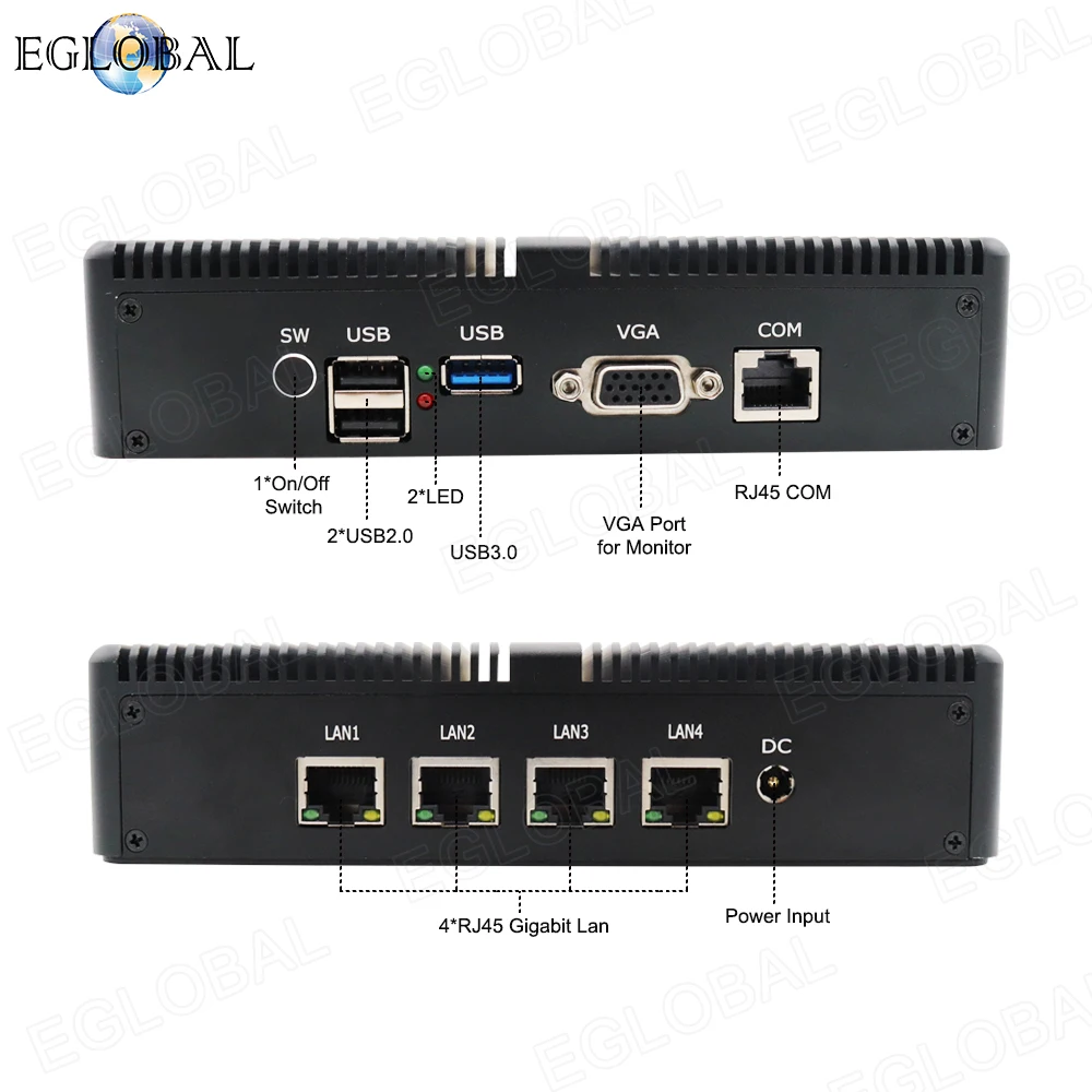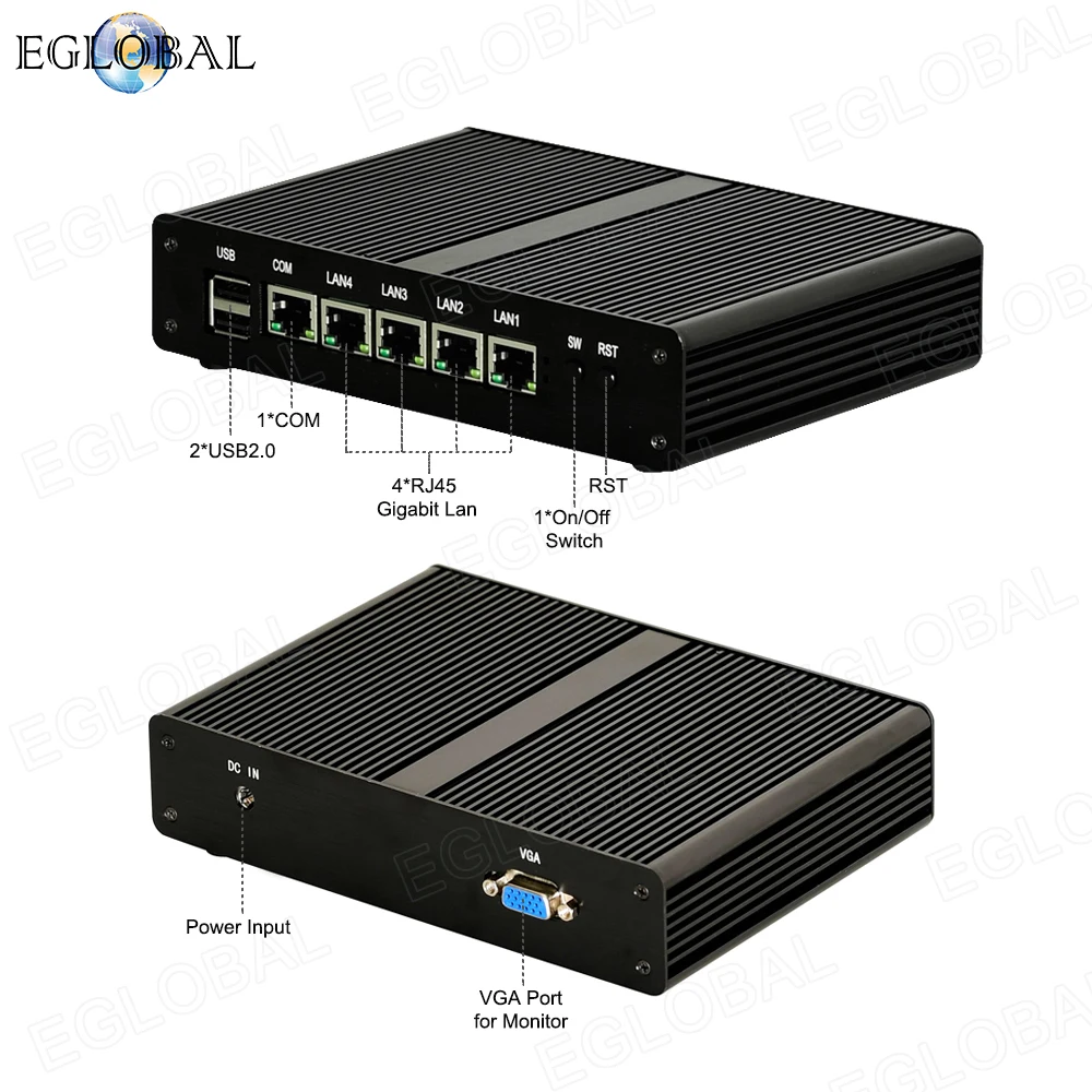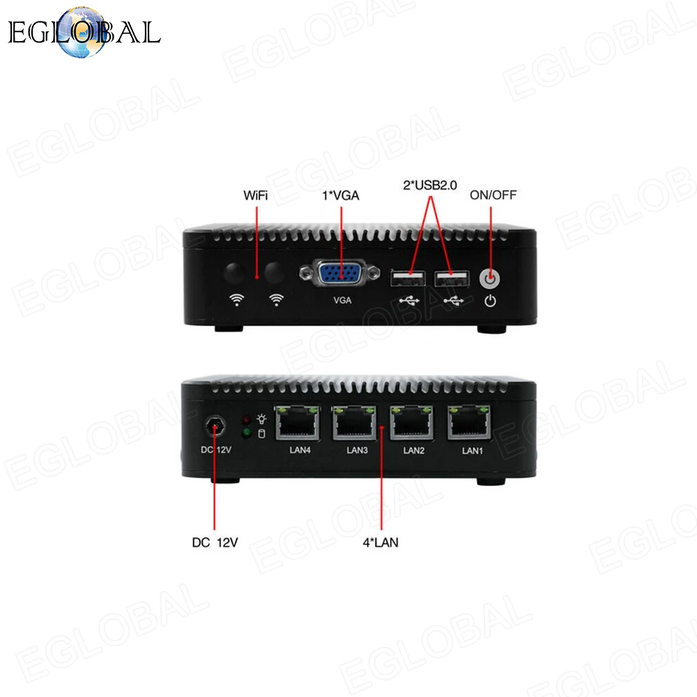 Eglobal 4 RJ45 Lan Intel Celeron J1900 Fanless Mini PC PfSense Firewall Router Quad Core Network Service Multi-function PC