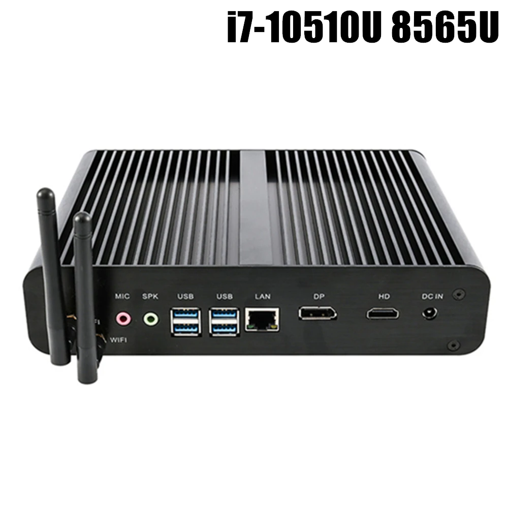 2020 Top Fanless Mini PC Intel Core i7 10510U i7 8565U i5 8265U Mini Computer 2*DDR4 M.2+Msata+2.5''SATA 4K HTPC Nettop HDMI DP