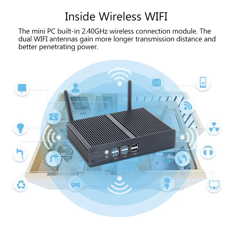 Fanless Mini PC Windows 10/8/7 Intel Core i3 4005U/4010Y i5 5200U/4200Y i7 5500U/4500U Celeron 2955U WiFi HDMI VGA 4*USB3.0 HD Graphics 4400