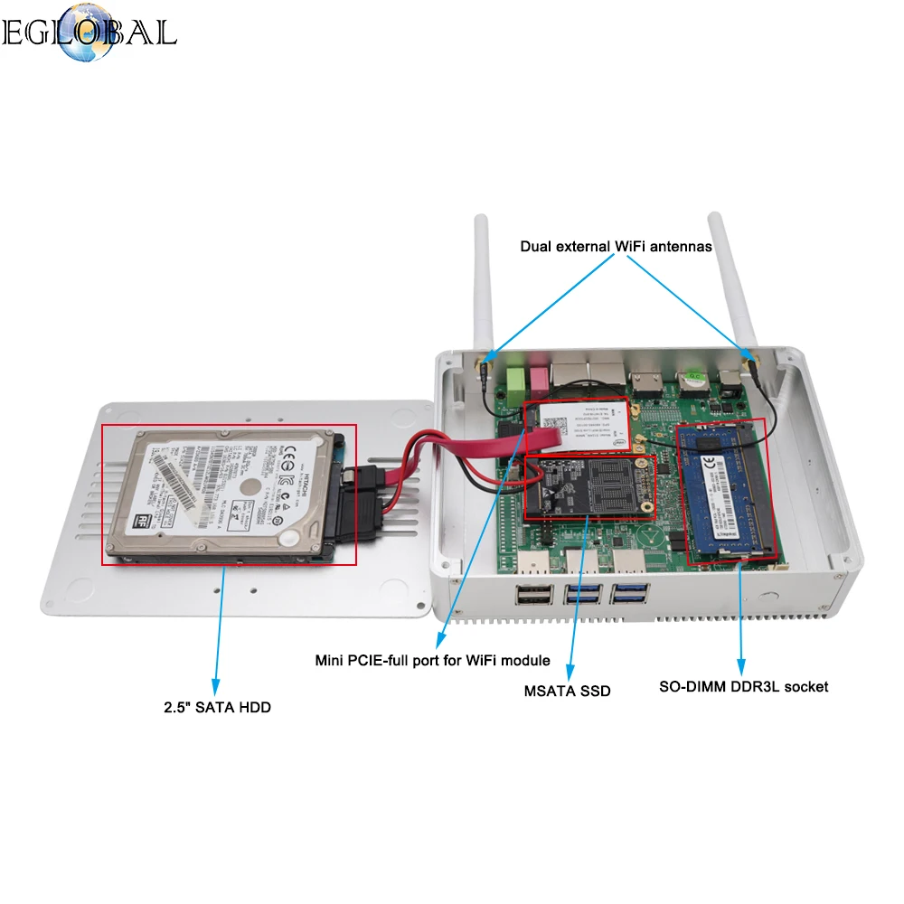 Eglobal Model M3-N3150YL Fanless Mini PC Celeron N3150 With Dual HDMI Dual Lan Barebone Desktop Computer 4K HTPC WiFi HDMI 300M