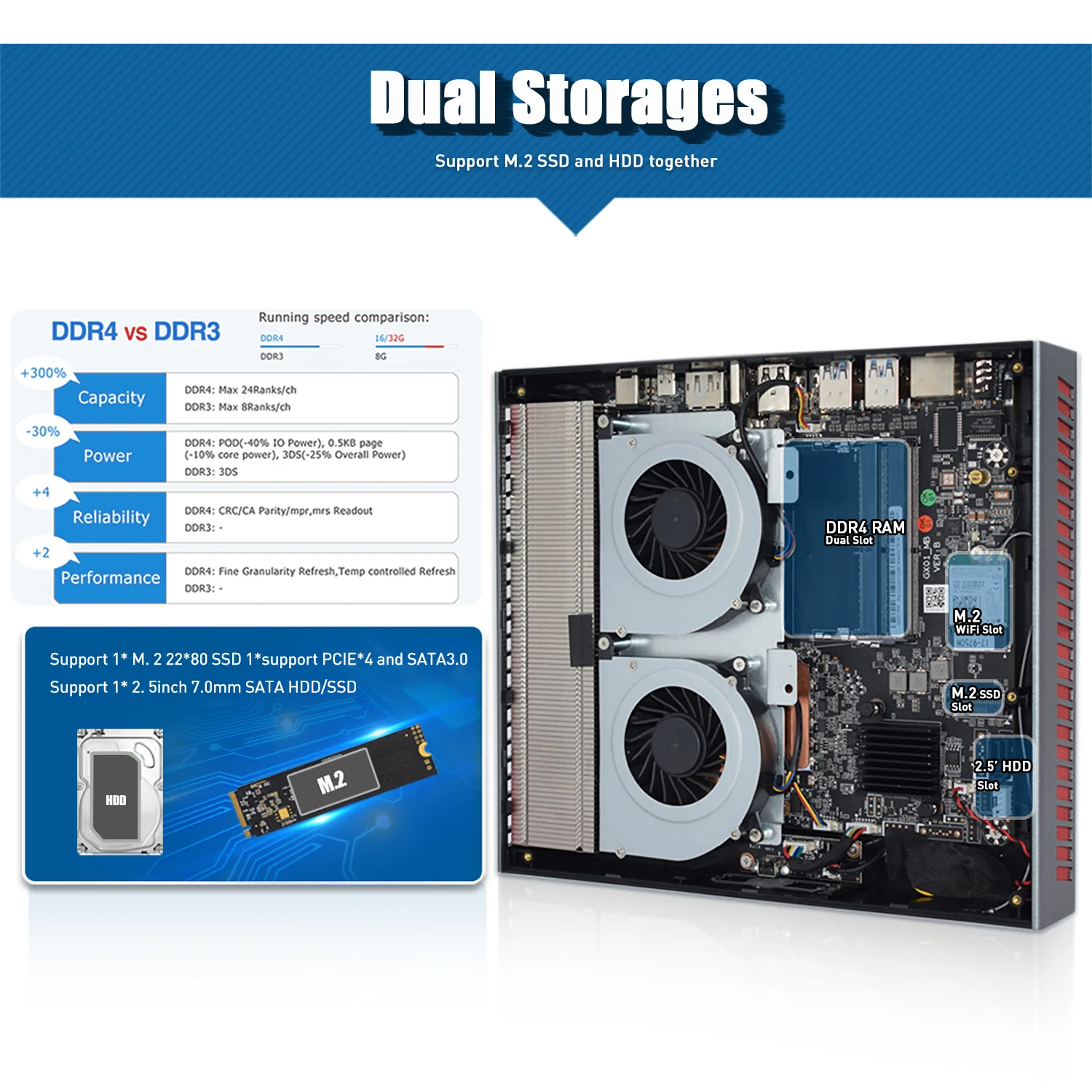 3. Support two hard disk, 1*M.2 NVME/SATA+1*2.5'' SATA, and we free send 2.5 inch SATA cables;