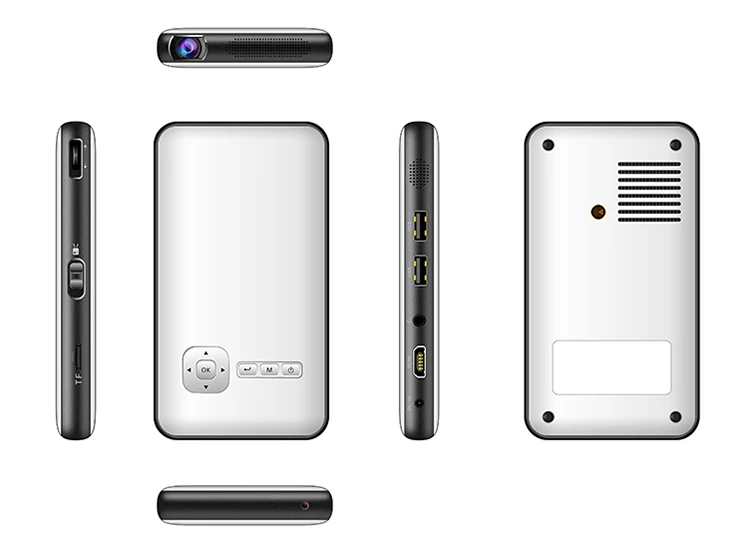 Projector specification of MINI Android LED projector full HD Style: DLP Contral Ratio:2000:1 Lamp: LED Lamp Brightness: 500 Lumens Brightness uniformity ratio: 85-90 degreee Resolution: WVG 854*800 Projection cover size: 30-120 inches Projection ratio: 1.19:1 Projection distance: 1.1-5m Aspect radio: 4:3/16:9/16:10 Kestone correction:Manual, vertical: 40 degree Projective mode: orthography Lamp life: 15000 hours System specification of MINI Android LED projector full HD CPU:Rockchip 3128, Quad core ARM cortex-A7, up to 1.3Ghz GPU:ARM Mali-400MP2 GPU, Support open GL ES 1.1/2.0 OSD:Android4.4 Graphic computing High perfomance dedicated 2D processor 1080P multi format video decoding, including H264 hardware decoding 1080P video encoding for H.264 Memory: 1GB DDR3, 8GB nand flash wifi: 802.11 b/g/n, AP6330 2.4G/5.8G dual band wifi module Bluetooth: bluetooth 4.0 Power: DC input 5V/2.5A Built in battery: 4300mha i/o port 1*HDMI 1.4A, HDMI 2.0, with up to 4K(1080P) 1*TF card up to 32G 2*USB host: host USB port 1*earphone 1*power input: 5V/2.5A What is in the box of our MINI Android LED projector full HD Gift box Remote control User manual The highlight of our MINI Android LED projector full HD Quad core CPU, android 4.4, 15000 hours lamp life, low noise, dual band wifi, 1080P