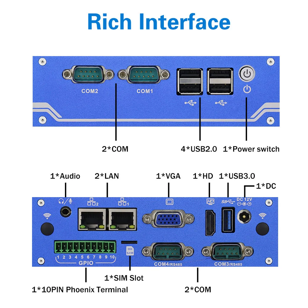 2 DDR4 MiniPC Industrial Mini PC Computer Core i7 10510U 4K HTPC 3D Blu Ray VGA 2*RS232 Nettop HDMI Desktop Windows10 Linux WiFi