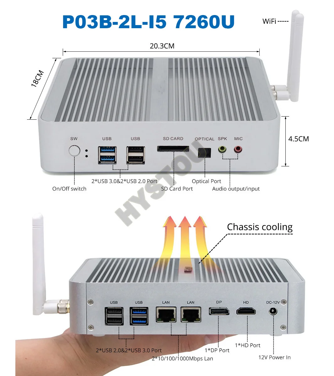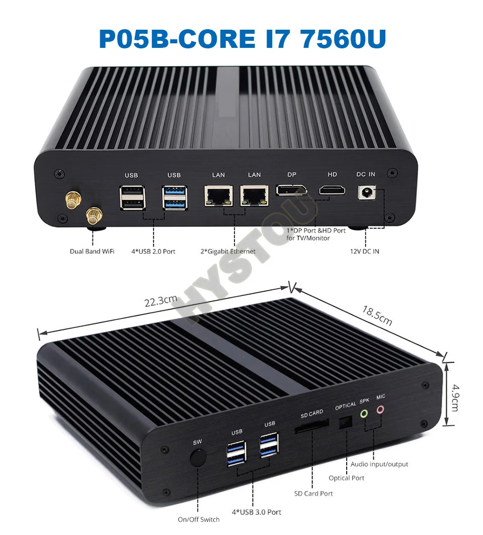 When you buy it ,pls confirm the module first. Thank you! 2. H5 model support SIM card slot, And there should be preinstall 3G/4G module on the mainboard before use it. If you need 3G/4G pls contact us. Intel UHD Graphics 540,DDR4 memory >>Intel® Core™ i5 7200U Processor (3M Cache, 2.5 GHz up to 3.0 GHz); Intel HD Graphics 620,DDR3L memory >>Intel® Core™ i5 7100U Processor (3M Cache, 2.4 GHz up to 3.0 GHz); Intel HD Graphics 620,DDR3L memory Barebone system no ram no storage, please use DDR4-2133/2400/2666 260pin for DDR4 module and DDR3L-1600MHz for DDR3Lmodule laptop original brand SODIMM Ram and SSD. If buyer purchase barebone system no ram/ssd, seller is irresponsible and makes no compensation for your own ram/ssd if it is incompatible on this pc. If you have any questions or needs, don't hesitate to contact with us in time, we will do everything we can to help you. Free Operating System: Default installed our activated genuine OEM windows 10 pro license English for free, other languages can be selected among: Russian,Spanish,Portuguese,French,German,Arabic,Italian,Japanese,Turkish,Greek etc. Please inform us which language you want to install. Other systems we can install free are like Linux, XBMC(Kodi), Ubuntu, Openelec etc if you need. 1. USB Infrared remote (can turn power off and control media center like kodi) add extra cost US$14. 2. External USB DVD-ROM add extra cost $18. 3. USB 2.4GHz Air Keyboard& Mouse, add extra cost $20. 4. Genuine OEM windows 10 pro license install free.(original cost 35$) You can buy the accesories here: https://www.aliexpress.com/item/32799059674.html 5. USB 3.1 Personalized Mobile Hard Disk Type C Wholesale M.2 SSD: https://www.aliexpress.com/item/4000091738327.html 6. Bluetooth 4.0 dongle $5. 7. 3G module $20/unit, 4G module $45/unit, Support SIM card slot with 3G/4G. Specifications: 1. Intel Core i7 7560U ,Black Color: Mic;Speaker;4 USB 3.0 port;4 USB 2.0 port;2 RJ45 Gigabit LAN Port;1 DP;1 HDMI; 1 SD card slot; 1 DC12V In; Mic;Speaker;4 USB 3.0 port;4 USB 2.0 port;2 RJ45 Gigabit LAN Port;1 DP;1 HDMI;1 EDP; 1 build-in SIM card slot; 1 DC12V In; 3. P03B-Intel Core i5 7260U ,Silver Color: Mic;Speaker;4 USB 3.0 port;4 USB 2.0 port;2 RJ45 Gigabit LAN Port;1 DP;1 HDMI; 1 SD card slot; 1 DC12V In; Mic;Speaker;4 USB 3.0 port;4 USB 2.0 port;1 RJ45 Gigabit LAN Port;1 VGA;1 HDMI; 1 DC12V In;