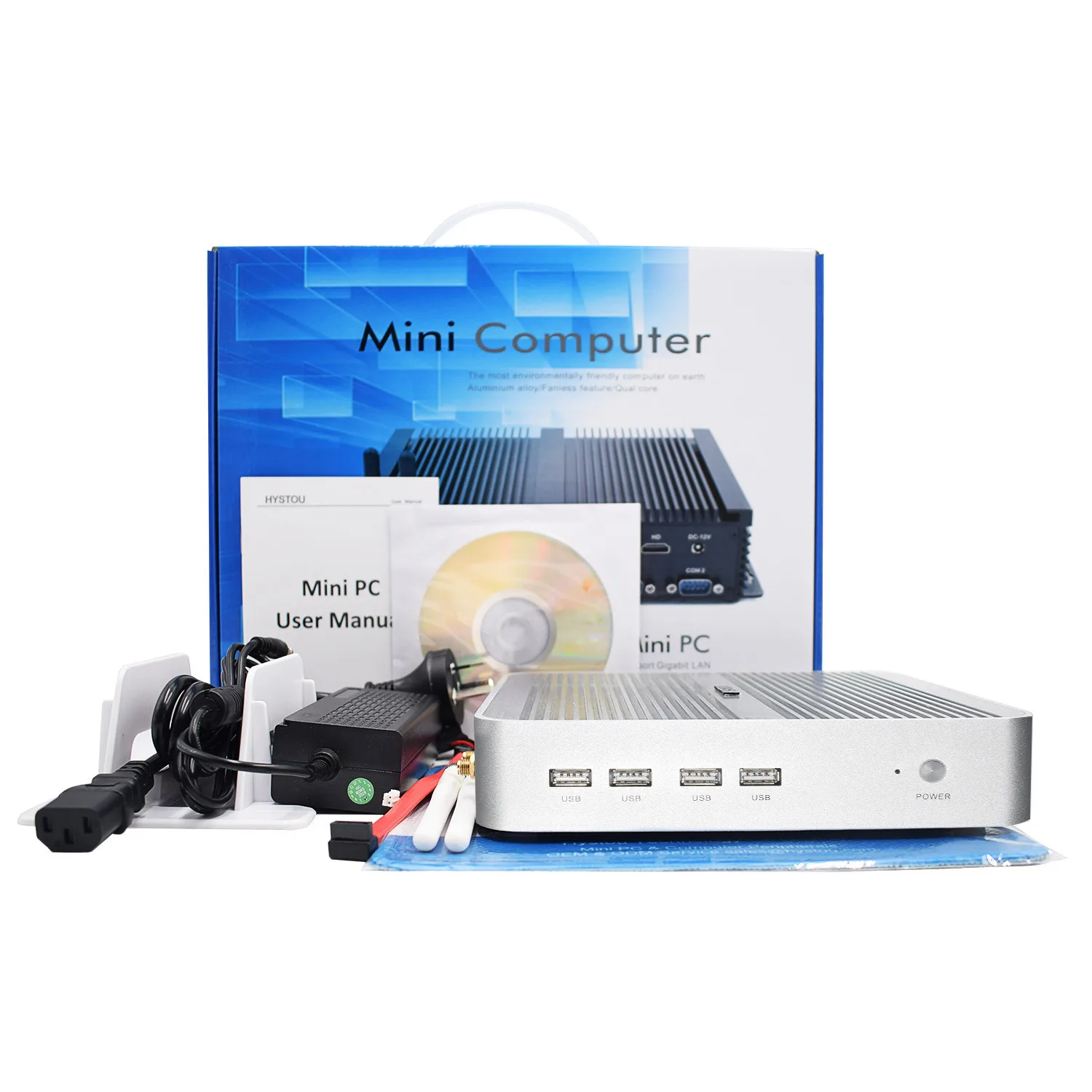 1*Mini PC + 1*Power Adapter + Power Cord + Drivers CD+SATA cables+Antennas