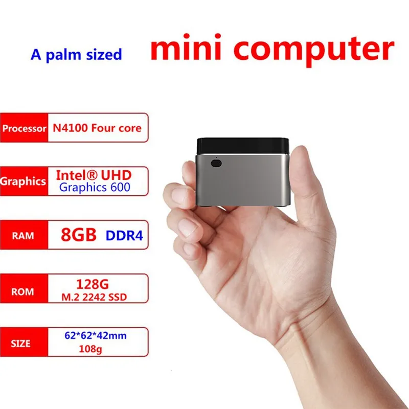 | Mini PC Intel Celeron N4100 Quad-Core 8GB LPDDR4 128GB SSD 2.4G/5.0G WiFi Bluetooth 4.2 HDMI2.0 4K 60Hz USB-C Windows10 Computer |