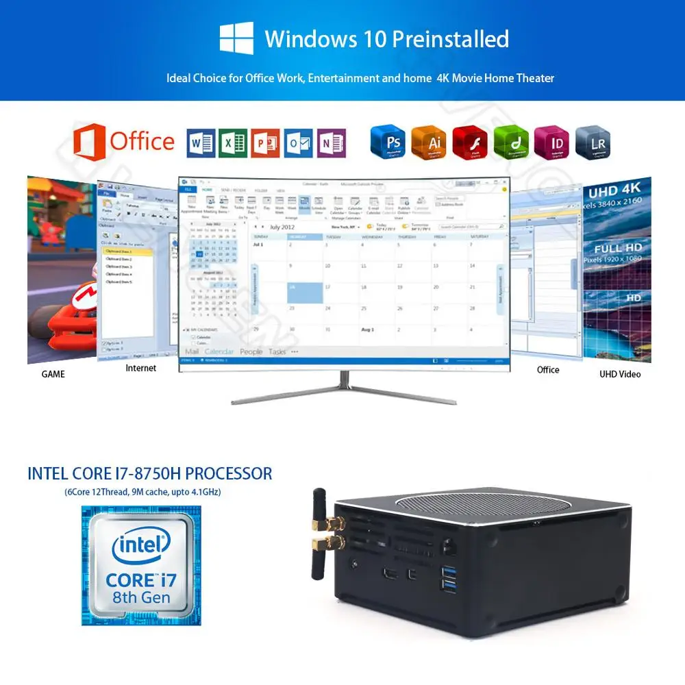Intel Nuc Core i9 9880H 8 Core 16 Threads Mini PC i7 8750H Windows 10 Pro 2.4G+5.8G WiFi Desktop Computer HDMI Mini DP Type-C