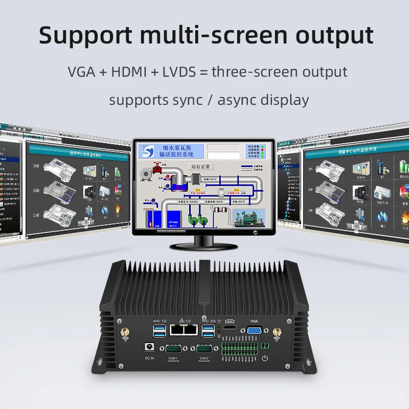 HLY Fanless Industrial Mini PC Core i5 8350U 7200U i7 7500U 2*LAN 2*RS232 8*USB Micro Computer Linux Windows 10 7 Wifi HDMI VGA