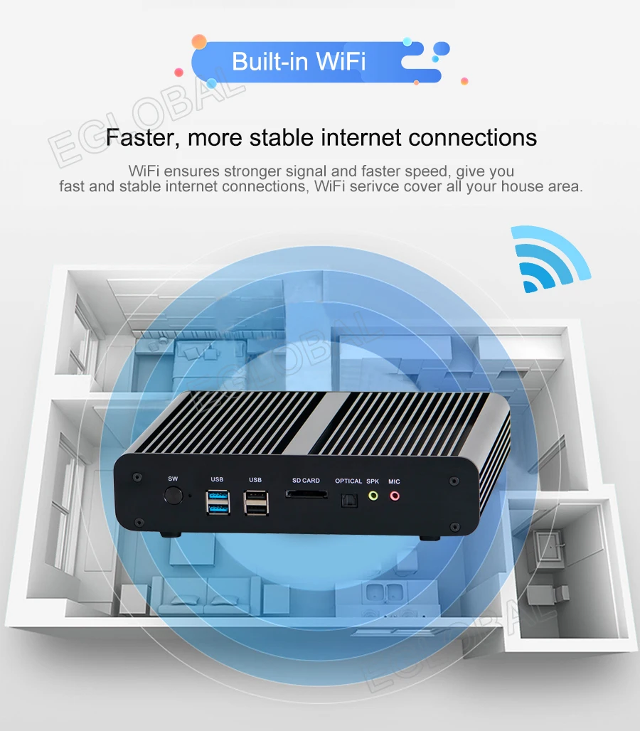 THIS EGLOBAL MINI PC DETAILSBarebone Mini PC ("No Ram No Storage" bundle) package DO NOT include WiFi(antennas), if you need please pay extra US $7 at this link. Other bundles include 2.4GHz WiFi(antennas) by default.The PC had best to use Samsung, SKhynix, Micron, etc. original brand accessories, We DO NOT compensate for the Buyer's own ram and hard drive.