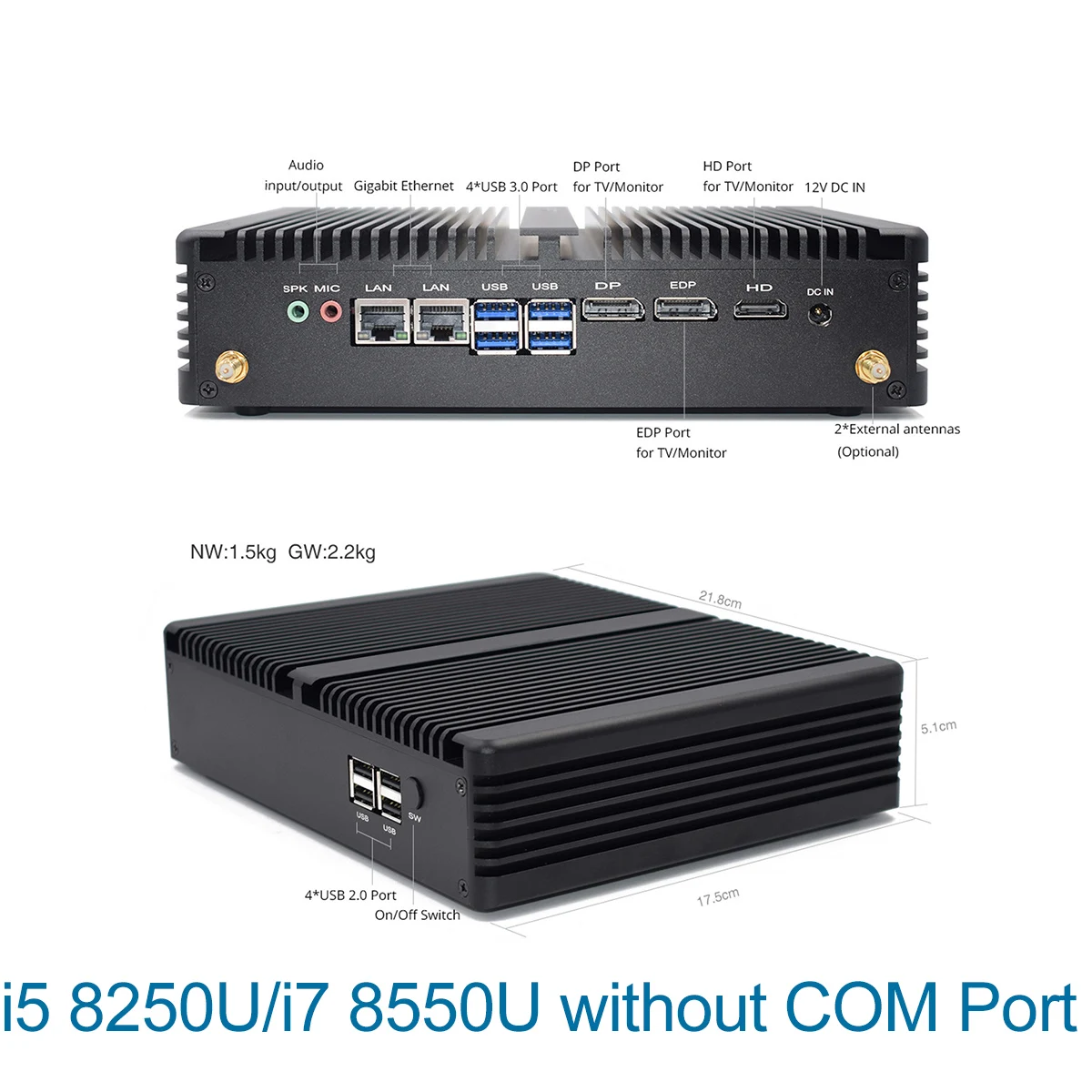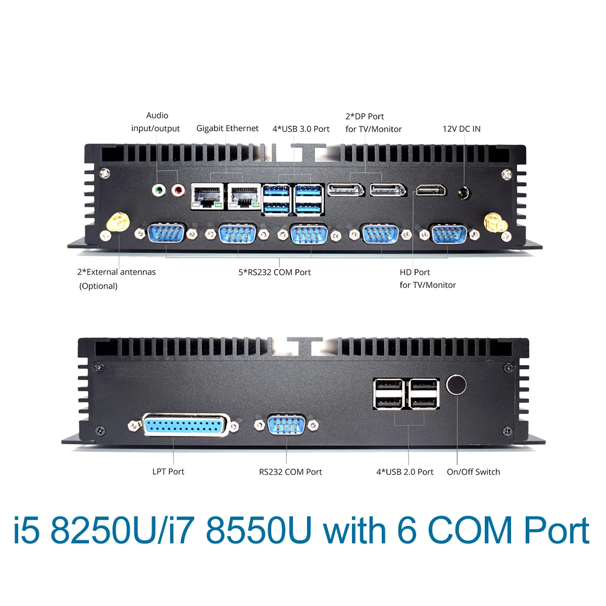 1. 8th Gen 14nm CPU Intel Core i5 8250U 4 cores 8 threads 1.6GHz up to 3.4GHz 6MB cache TDP 15W Intel® UHD Graphics 620. PC had best to use Samsung, SKhynix, Micron etc original brand accessories, We DO NOT compensate for buyer's own ram and hard drive. What In The Package: About Shipping 3.Usually, we will deliver goods free of charge at a faster speed, such as DHL, EMS, FedEx, our express train, etc., depending on different countries and regions. But for those remote areas, we have to deliver goods free of charge by registered mail, which will be slow for bitexpress, DHL, FedEx, or you can also increase the extra remote cost. Thank you for your understanding. All goods will be packed to ensure that they arrive in good condition. Notice: Due to the shipping policy we can't ship BIOS battery with the PC by Aliexpress shipping or Airmail, so when you get the parcel please add an CR2032 battery to the motherboard. Should you have any questions, just contact us. Thanks 1. Office work: Office, Skype, yahoo, outlook and all other office requirement support and runs perfect; 5.Used as server, used at industrial machine ,hospital,etc Mic;Speaker;4 USB 3.0 port;4 USB 2.0 port;2 RJ45 Gigabit LAN Port; 2*RS485/232 COM+4*RS232 COM;1 LPT port, 1 SIM slot, 1 DP;1 HDMI; 1 EDP; 1 DC12V In; >>H5-Intel Core i5 8250U/Core i7 8550U NO COM: Mic;Speaker;4 USB 3.0 port;4 USB 2.0 port;2 RJ45 Gigabit LAN Port;1 SIM slot, 1 DP;1 HDMI; 1 EDP; 1 DC12V In;