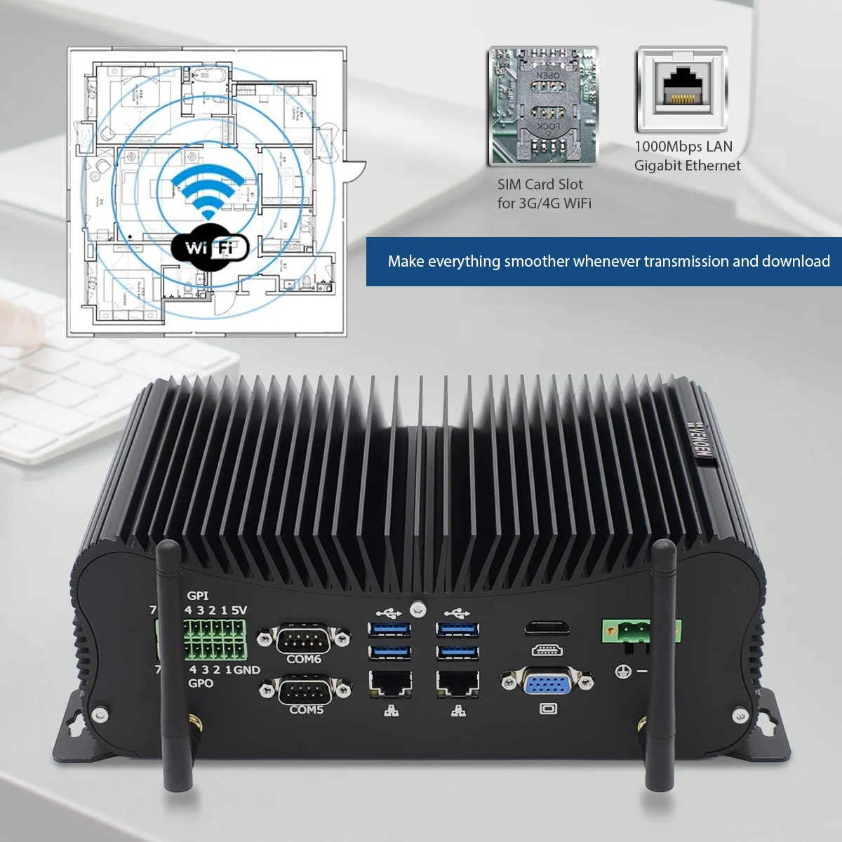 Wide Voltage 36V Intel Core i5 10210u i7 10510U Industrial Mini PC with GPIO LPT 7*24 Hours Linux Computer 8565u WiFi 4G SIM AC